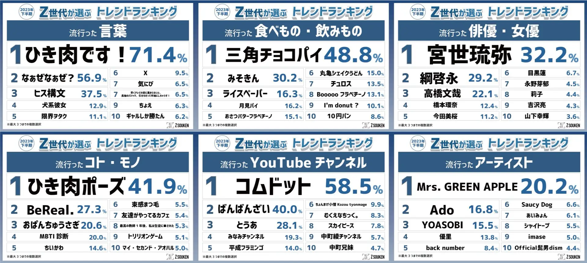 すこし前になりますが、2023年下半期のZ世代トレンドランキングです。↓